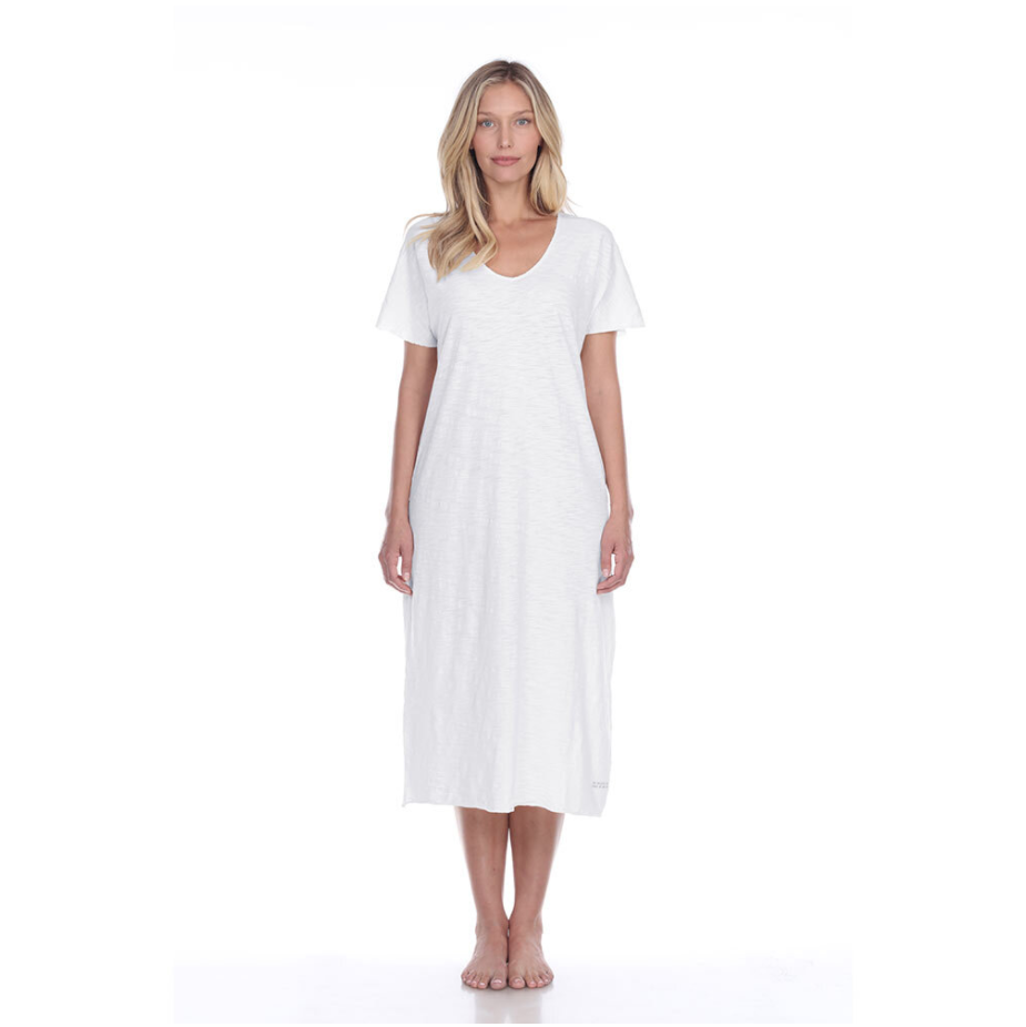 CHELSEA (WHITE) Cotton Short-Sleeve Long Dress with Poetic Quotes and Sayings