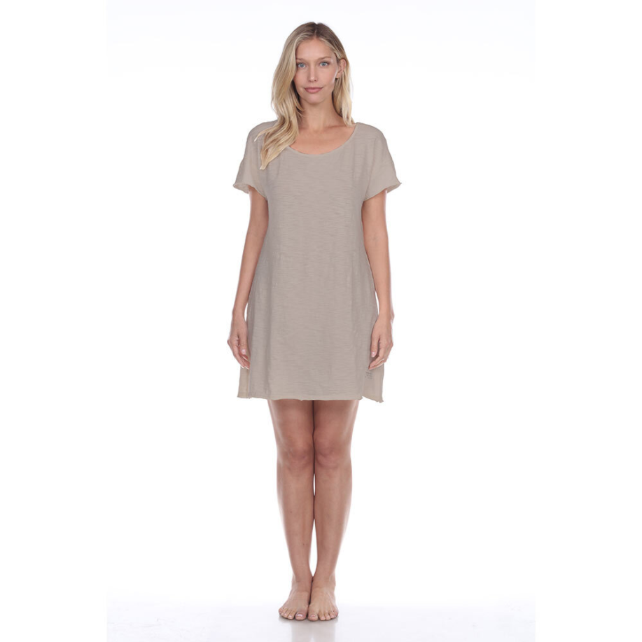 ASHLEY (STONE) Cotton Short-Sleeve Dress with Poetic Quotes and Sayings
