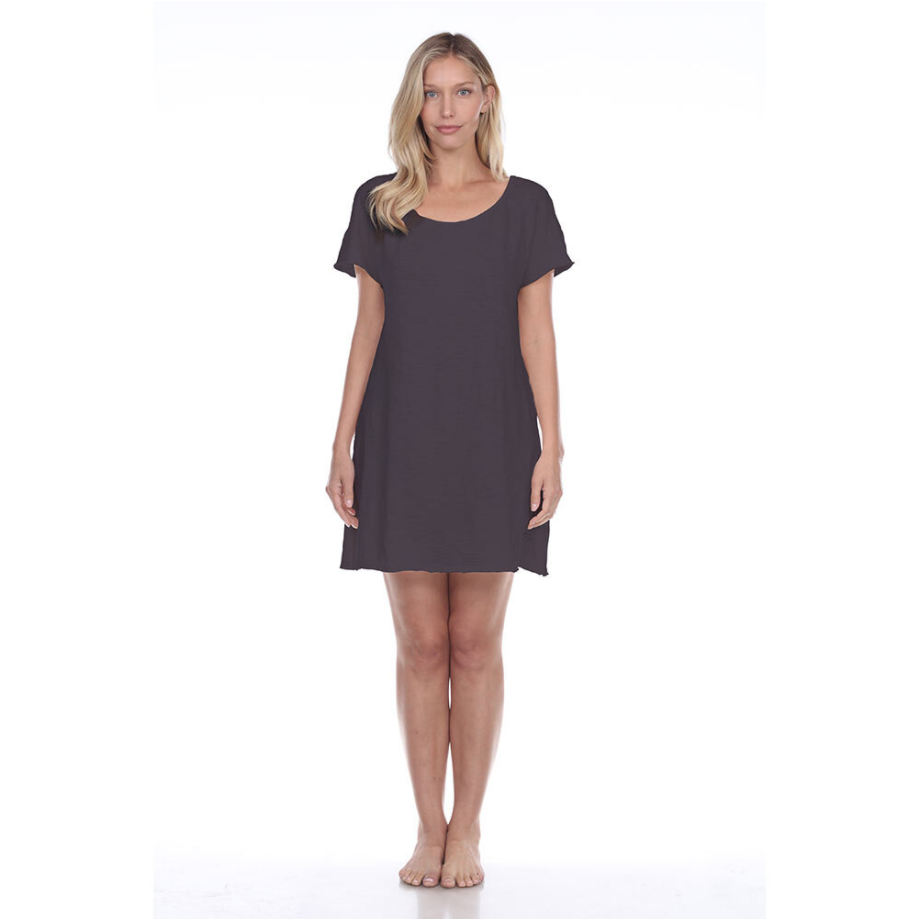 ASHLEY (GREY) Cotton Short-Sleeve Dress with Poetic Quotes and Sayings