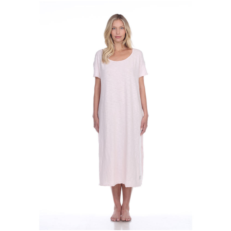 CHELSEA (PINK) Cotton Short-Sleeve Long Dress with Poetic Quotes and Sayings