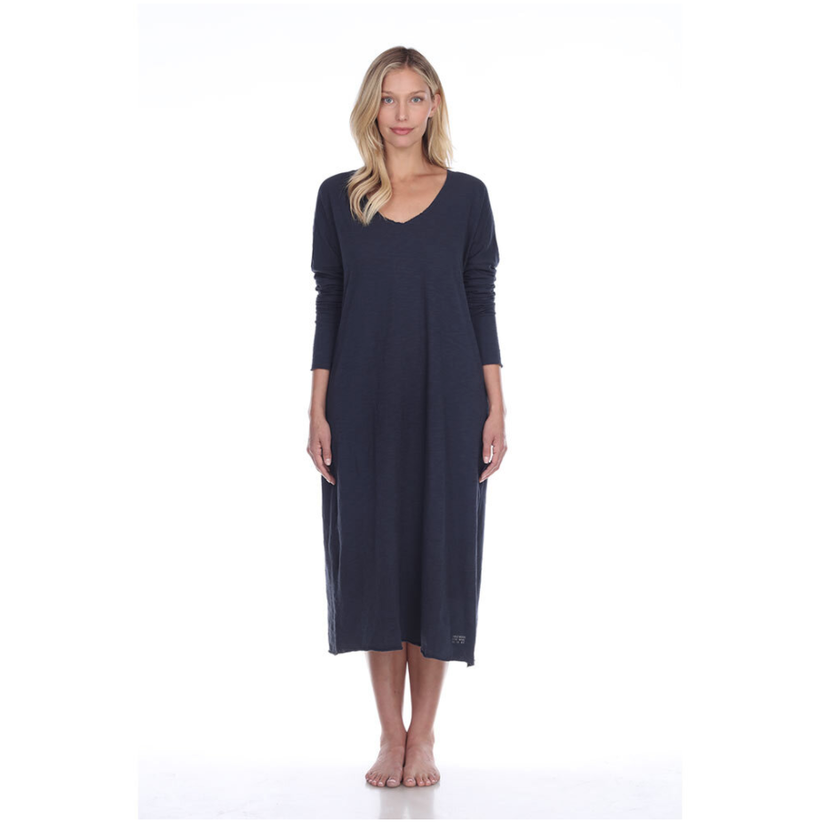 COCO (NAVY) Cotton Long-Sleeve, Long Dress with Poetic Quotes and Sayings